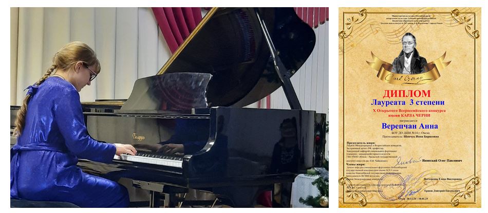 Подведены итоги X Открытого Всероссийского конкурса имени Карла Черни (по видеозаписям). Верепчан Анна стала Лауреатом III степени (класс преподавателя Шевчук И.Б.)